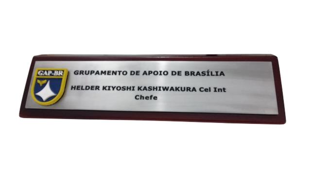 Material: Madeira com placa em aço inox e Brasão em Acrílico.