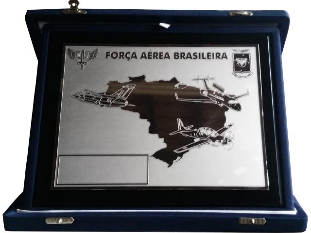 Efeito: Placa aço inox 20 x 15, fundo baixo relevo letras e detalhes espelhados.