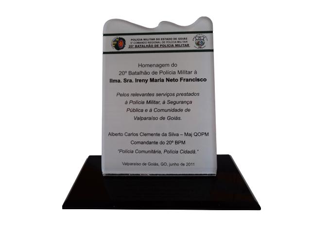 Troféu personalizado em acrílico para homenagem.