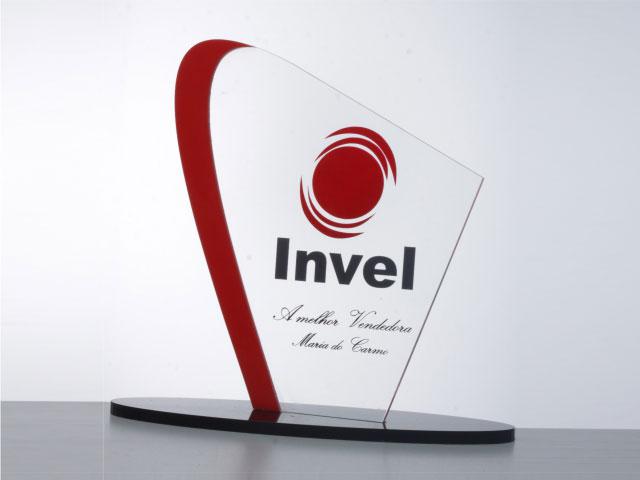 Efeito.: troféu em acrilico cristal com detatlhe sobreposte em acrilico vermelho