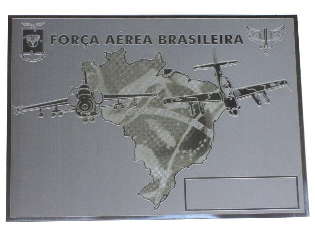 Efeito: Placa aço inox 21 x 30, fundo baixo relevo letras espelhadas, com gravação de reticula (foto).