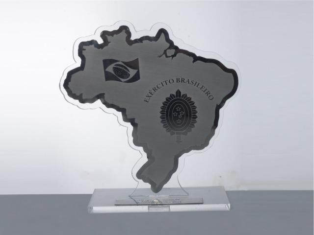 Trofeu: 18 X 18 cm (A x C) acrílico 10m e inox.