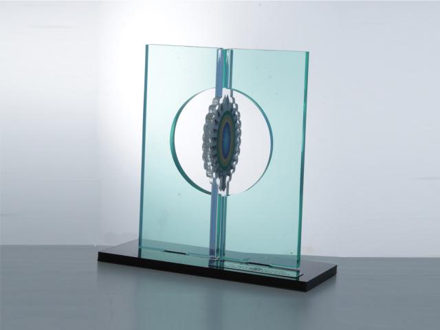 Trofeu: 17 x 21 cm (A x C), acrílico verde translúcido cristal.