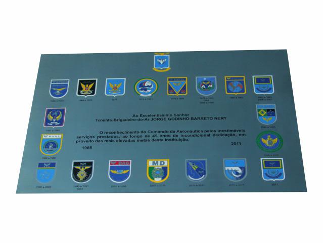 Efeito: Impressão de texto e 20 logomarcas em baixo relevo, com pintura automotiva resistente a intempéries.