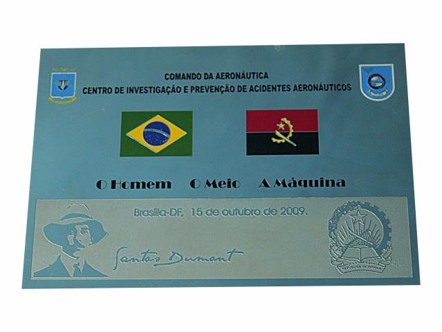 Efeito: Impressão de texto e logomarcas em baixo relevo, com pintura automotiva resistente a intempéries.
